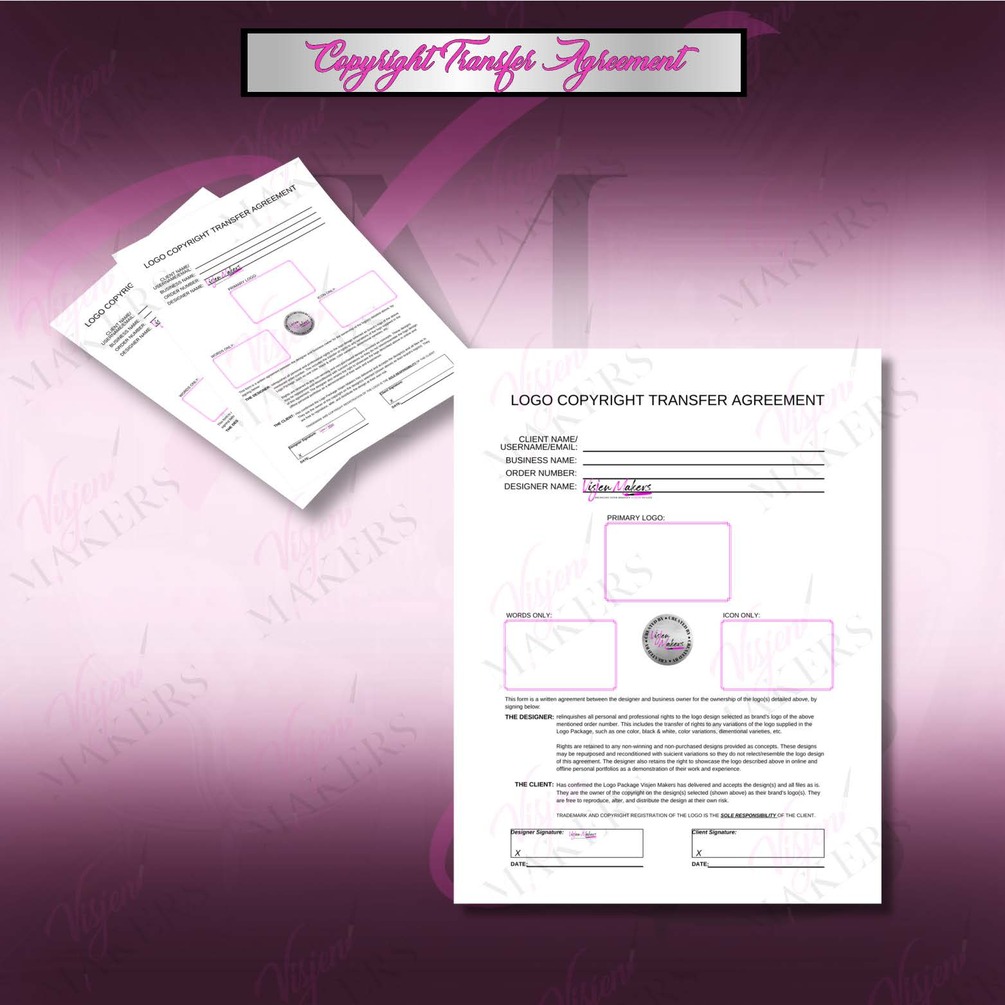 - Copyright Transfer Agreement for all logos,